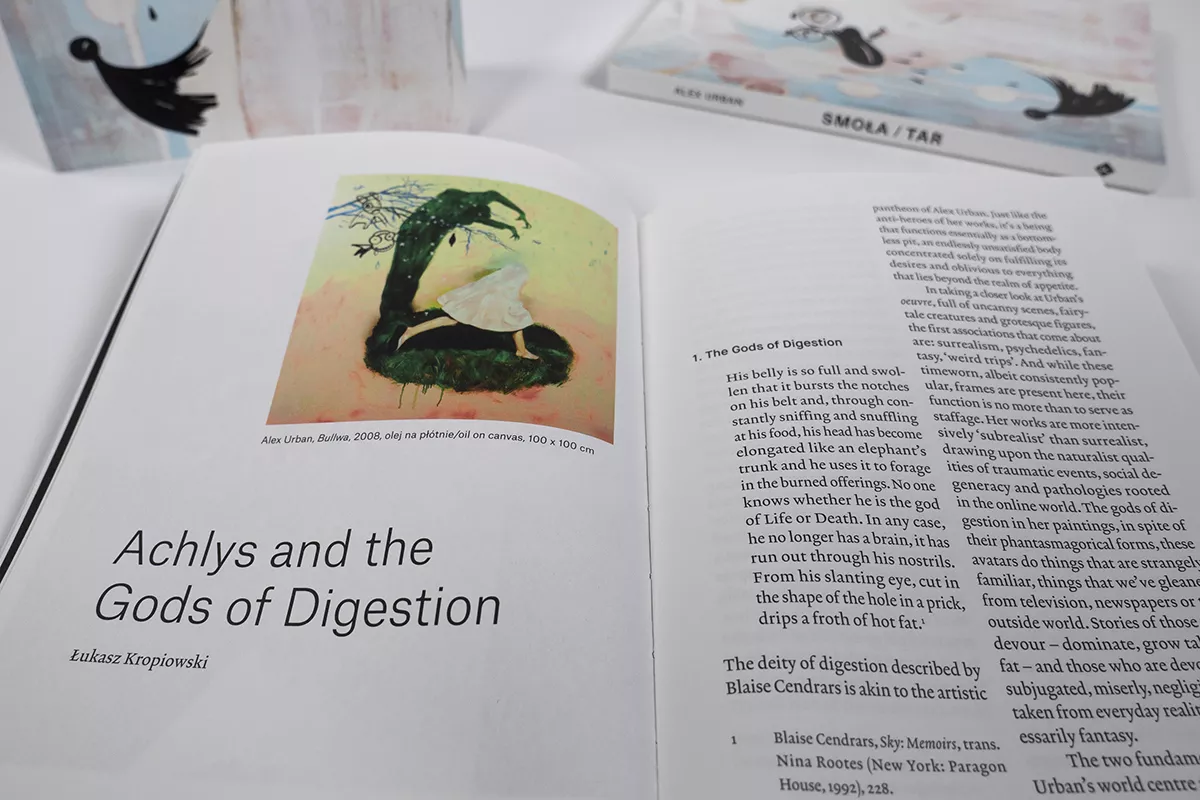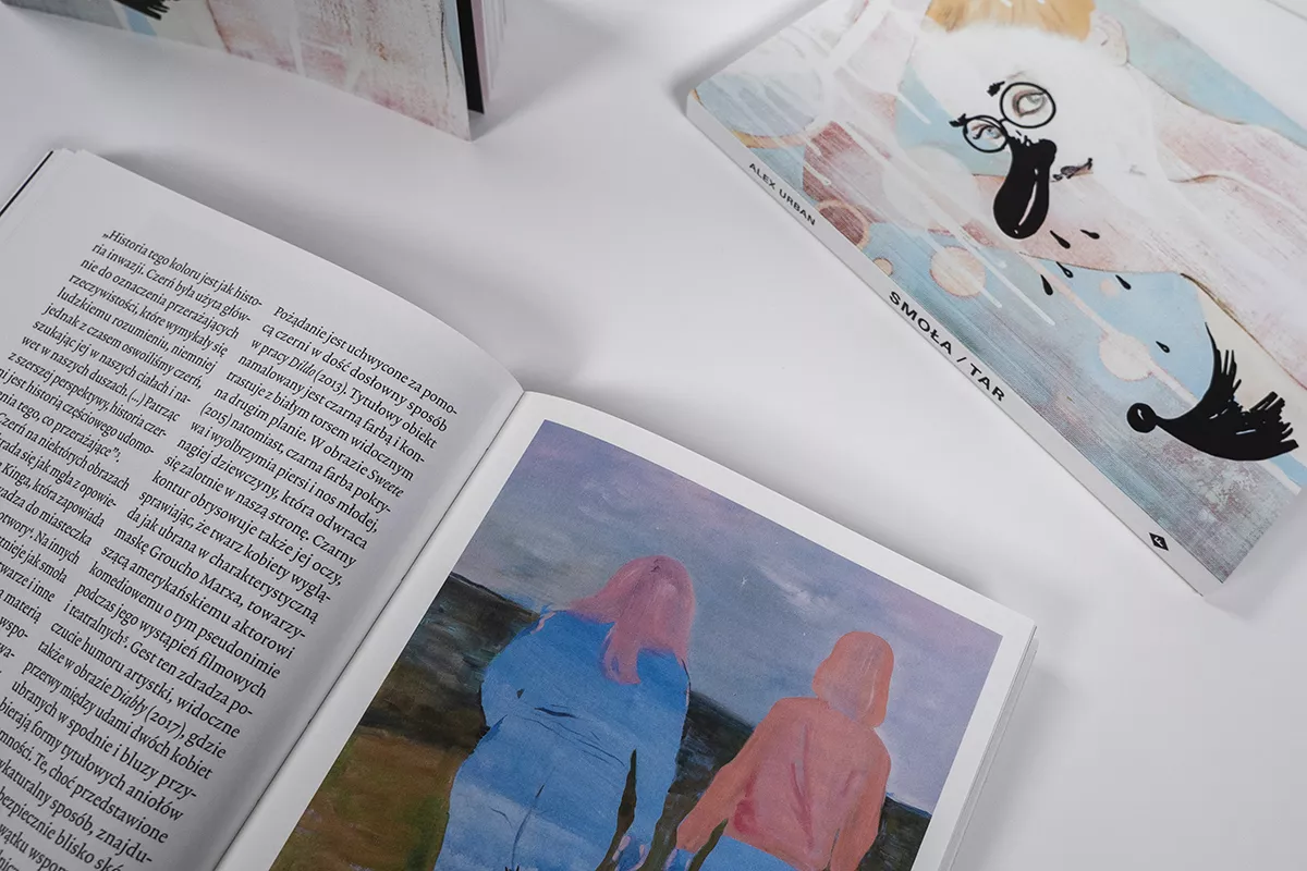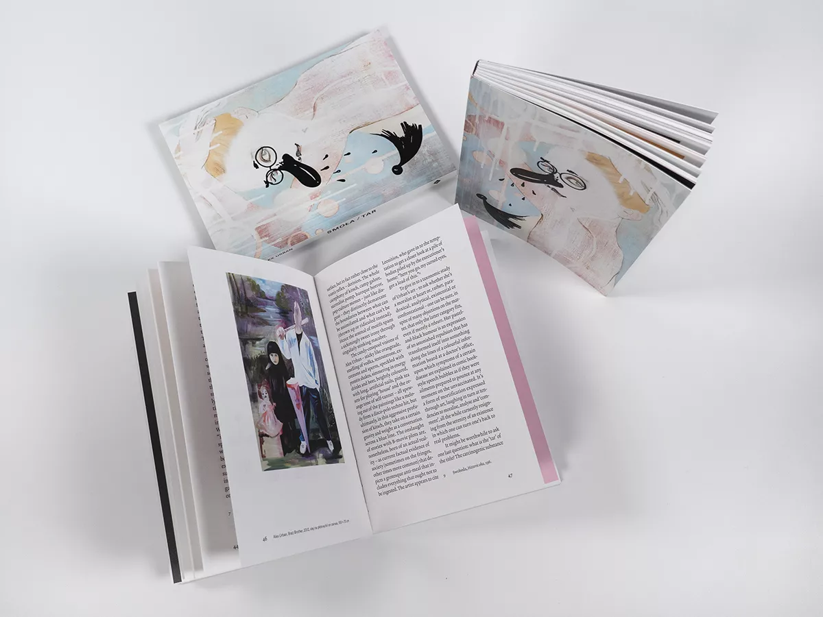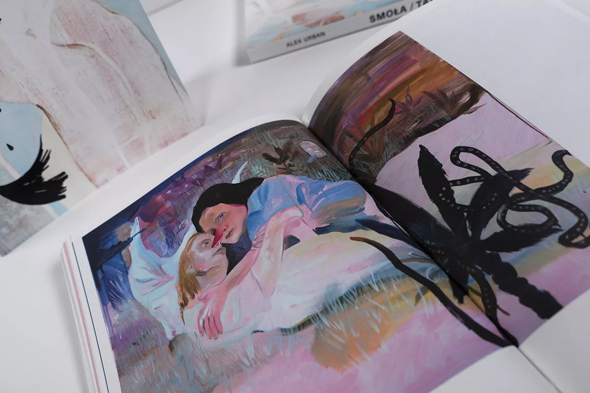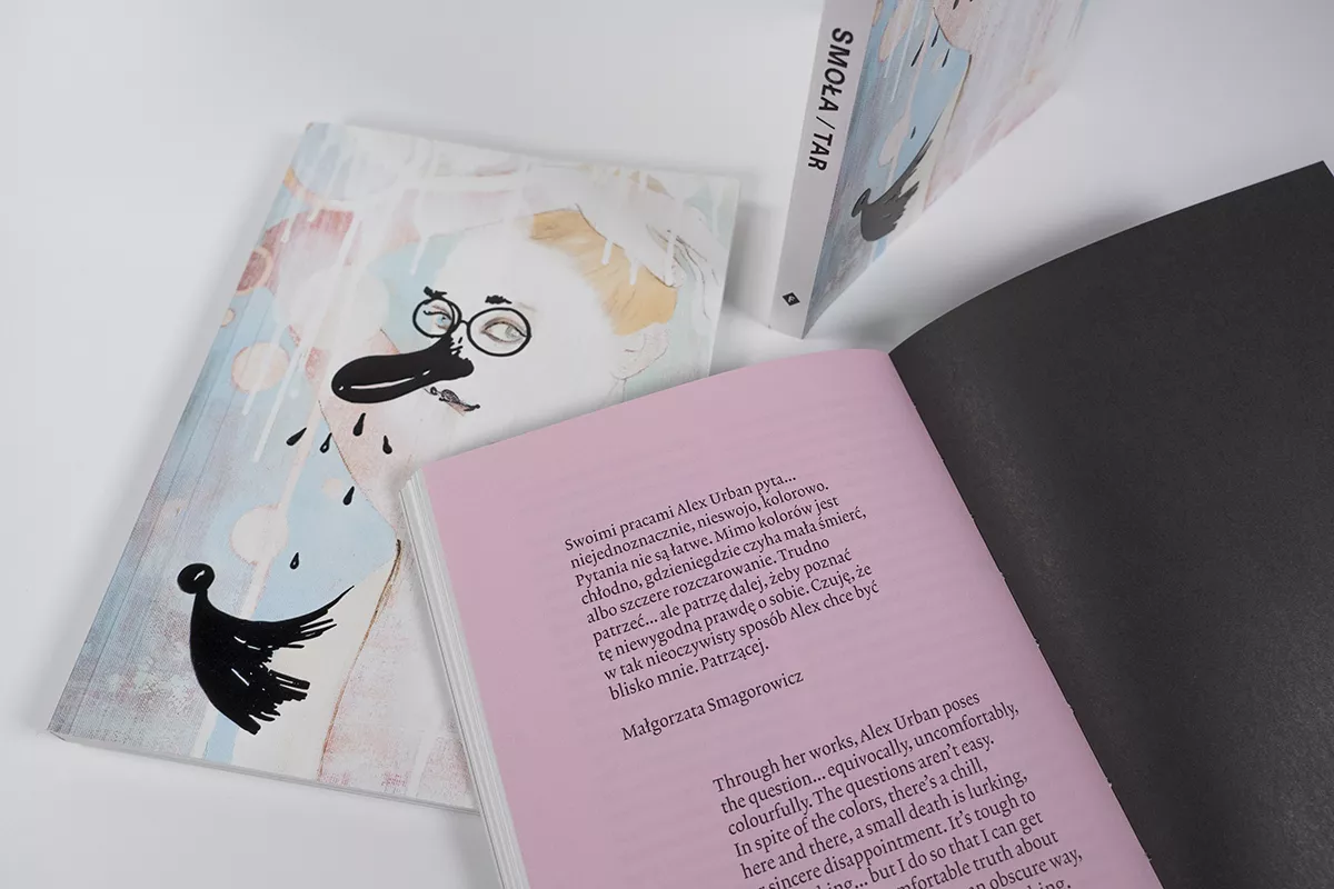 Katalog towarzyszący wystawie “Smoła” Alex Urban w Galerii Sztuki Współczesnej w Opolu współorganizowanej z Galerią Leto; kurator: Łukasz Kropiowski.