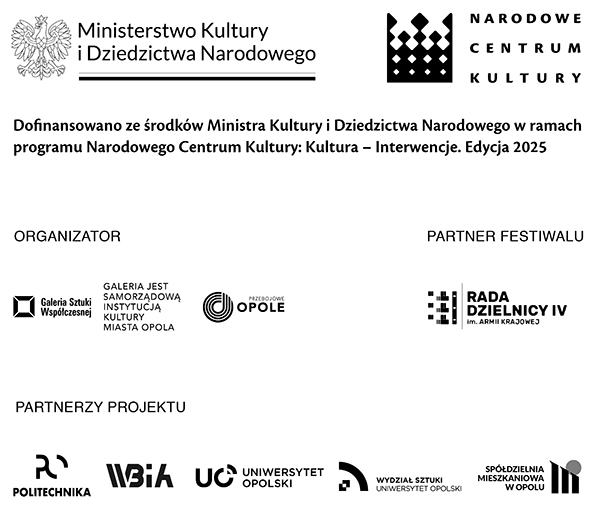Festiwal realizowany będzie we współpracy z Wydziałem Sztuki Uniwersytetu Opolskiego, Wydziałem Architektury i Budownictwa Politechniki Opolskiej, Radą Dzielnicy Osiedla oraz Spółdzielnią Mieszkaniową w Opolu.