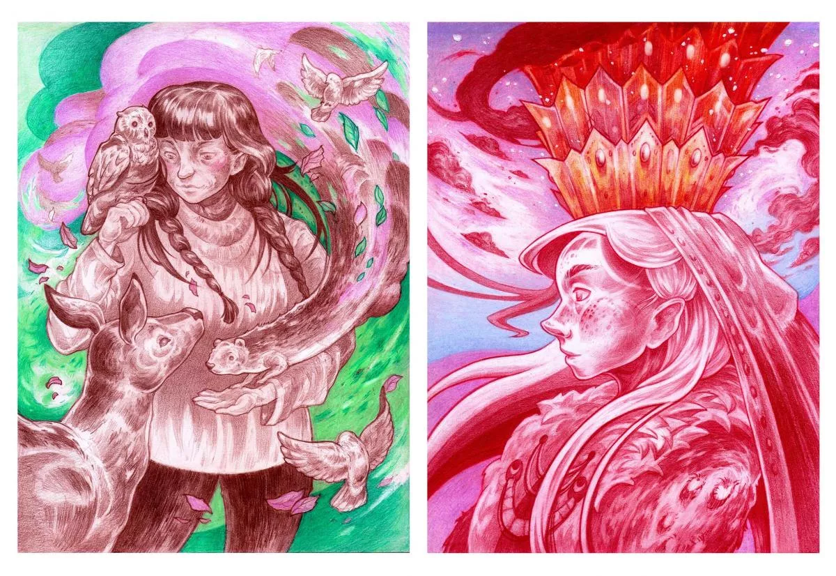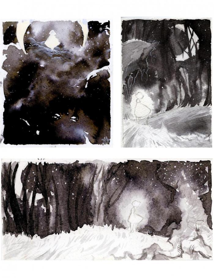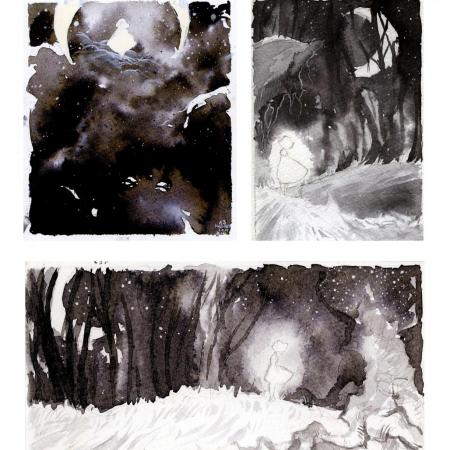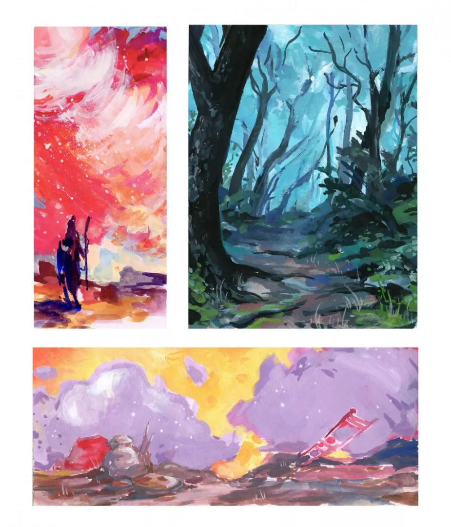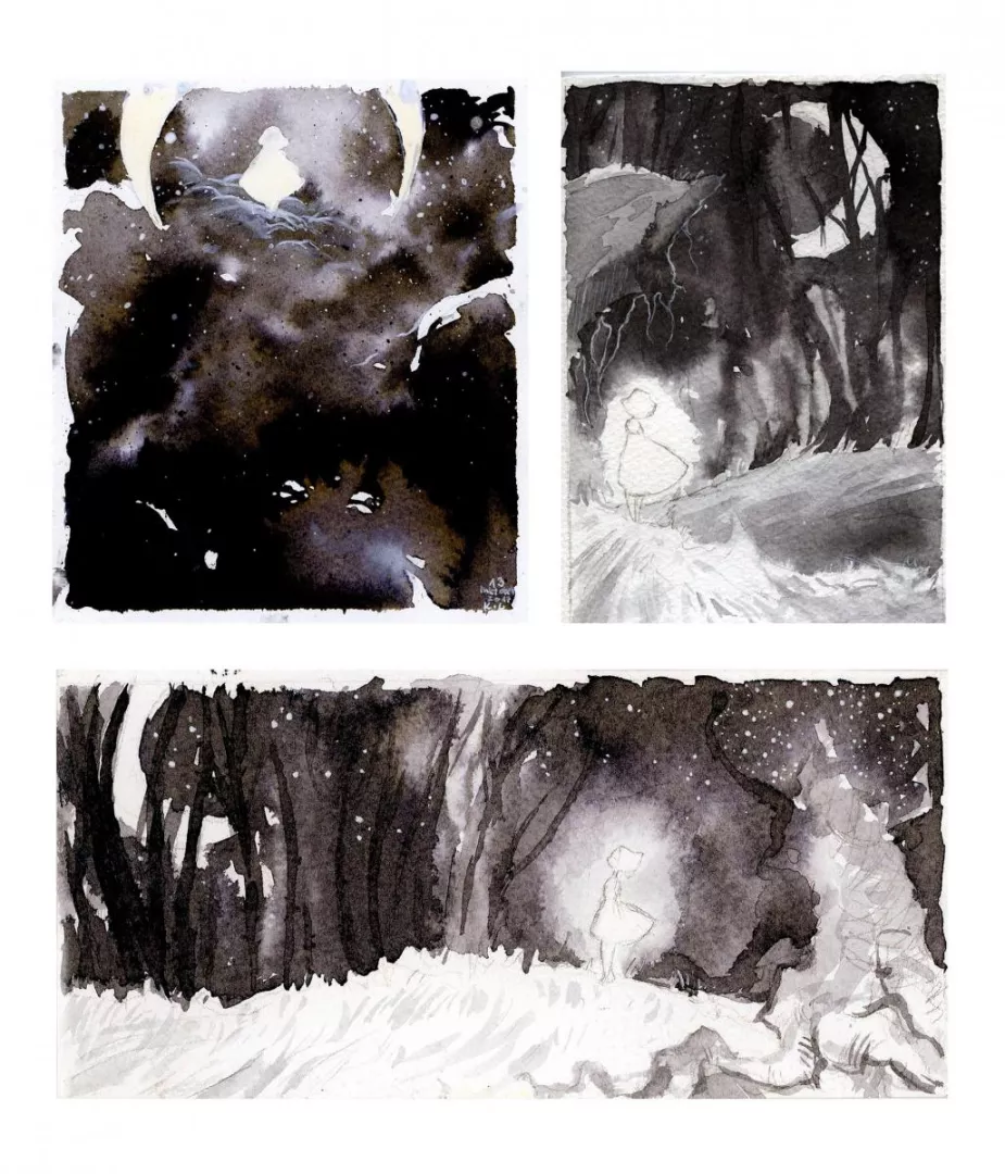 Preferuję tradycyjne narzędzia, farby, kredki, cienkopis. Każda technika daje inne zalety, ma inny wyraz, dlatego staram się je jak najlepiej wykorzystywać. Kolory są dla mnie bardzo istotne w budowaniu klimatu pracy, lubię nietypowe połączenia kolorystyczne.